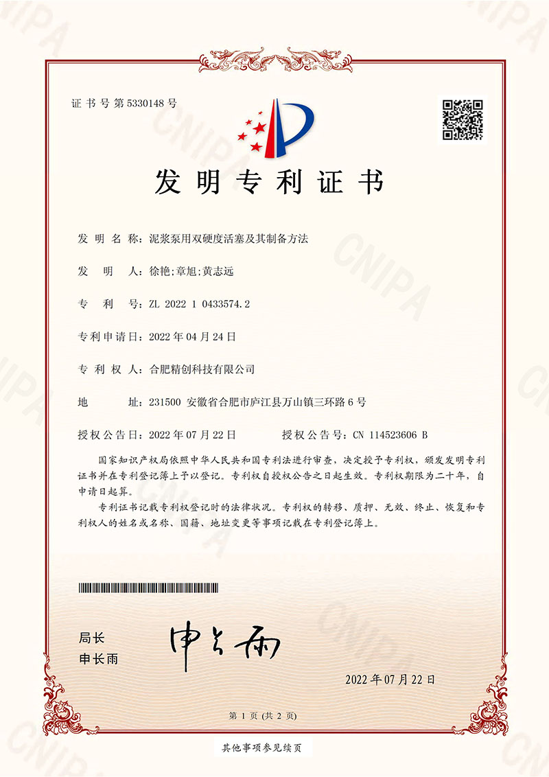 (2022年)泥漿泵用雙硬度活塞及其制備方法